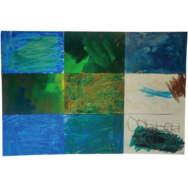 EaA250032|アオ|可児 大輝|300mm×444mm|水彩ペン アクリル クレヨン コラージュ